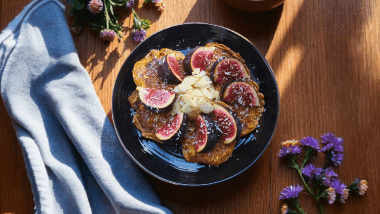 Pancakes Solaires aux Figues Fraîches, Miel Doré et Éclats d’Amande