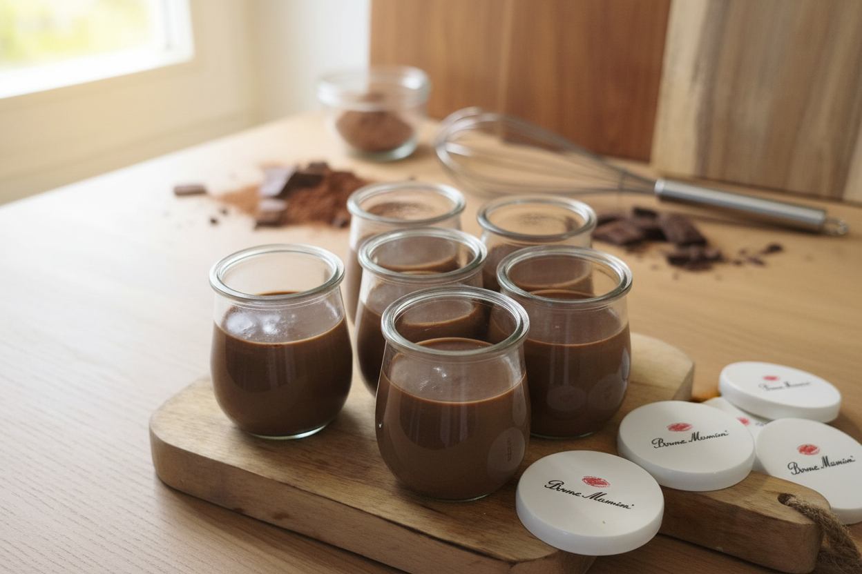 - FinitionVerse dans des ramequins ou verrines.Laisse tiédir puis place au frais au moins 1h pour une texture parfaite.