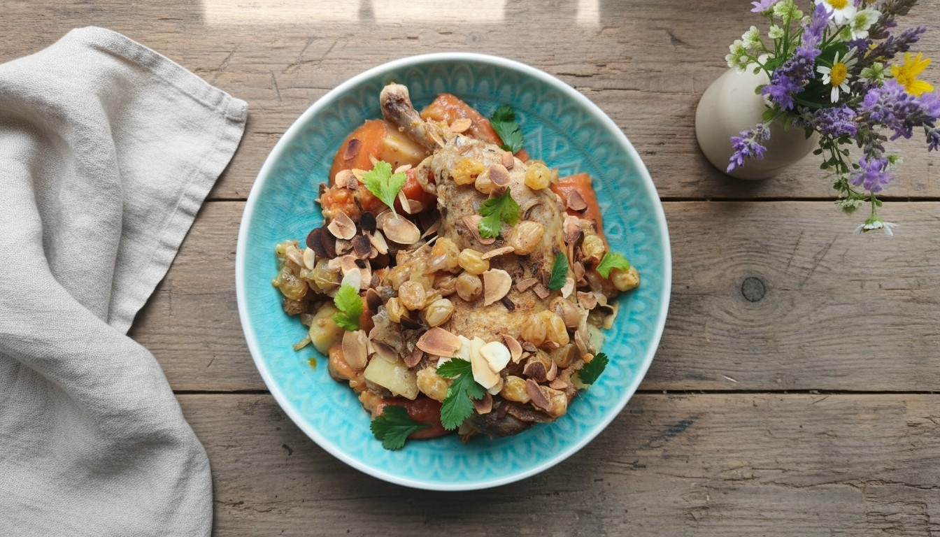 Un plat doux, parfumé et réconfortant, qui mêle la tendresse du poulet, la douceur des légumes et la petite touche sucrée du raisin. Une recette simple, rapide, mais pleine de charme oriental.